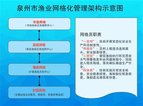 博彩论坛 深入贯彻党的二十大关于加强基层治理体系和治理能力现代化建设精神,积极探索“网格+N”工作模式,不断完善“市、县、乡镇、村级”四级渔船网格管理机制,有力有效落实“定人联船”,构建横向到边、纵向到底的“定网、定格、定人、定责”全覆盖监管体系。